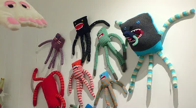I've been meaning to post up a slew of pictures since returning from an amazing week-long trip to Seattle for Thanksgiving. Jonlyn and I walked around quite a bit on our first day in the city, and we stumbled upon one great little gallery space after another. There's this funky shop called The Anne Bonny, and upstairs is Coco Howard's studio. We were then pointed in the direction of Schmancy, where we met the incredibly nice Kristen Rask. If you're into inventive uses of all things plush you've got to check out her shop. Kristen reminded us about a plush show that opened last week at Gallery Hanahou here in NYC. There's an incredible array of plushies on display for the next month, and I encourage you to check them out in person. Be sure to peruse my Flickr set devoted to all things plushie here. I've always had a few designs in mind that would lend themselves perfectly to the plush format and will definitely be exploring this medium in the new year!