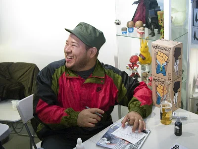 Last night, My Plastic Heart hosted the launch of kaNO's latest designer vinyl toy, Bodega. The character is based on the small juice bottle drinks that were widely available at the corner bodegas. I personally like the use of transparency in this new character, along with the proportion of the spray cap serving as the character's head. This run is limited to 300, so be sure to visit MPH in person or online to pick one up. More pics from the opening here on my Flickr.