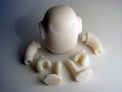 How cool is this? Gabriel from Crystalline Models was kind enough to snap a few pictures of the Sketchbot model in mid-print. I would love to see a time lapse of this process. The printer being used is the Objet Eden260V, which has a .00006” layer thicknesses (16 microns).