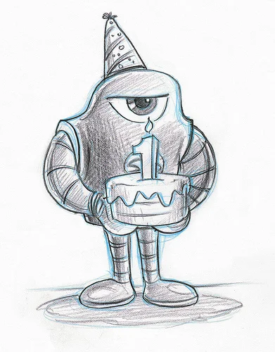 Today marks a full year since the Sketchbot blog went live. The character has come a long way over the past 12 months, evolving from a simple silhouette sketch to a full-fledged, resin cast prototype. I've also acquired a bit of recognition as a fledgling custom artist, having participated in seven custom shows since the beginning of the year, and in the process of completing two more. Next year promises to be an exciting one, with the plan for Sketchbot to become fully realized as a designer vinyl toy accompanied by an art show. I'm working on something small for NY Comic Con in early February, so stay tuned for more details. In the meantime, I've got a couple of freelance gigs that need my immediate attention, as their completion will help greatly in funding the Sketchbot venture.
